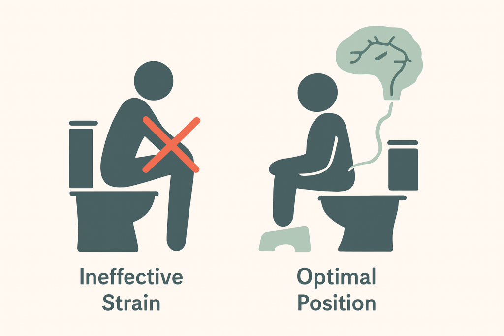 - Action 2 – Defecation Retraining: Go to the bathroom at the same time every day (post-breakfast is ideal). Sit with your knees above your hips (using a squatty potty can help). Breathe deeply and do not strain. You are teaching your brain-gut axis a new, calm routine. This is especially critical because chronic straining and anxiety can lead to pelvic floor dysfunction, where the muscles you use to go actually tighten when they should relax. Retraining creates a pattern of ease, not force.